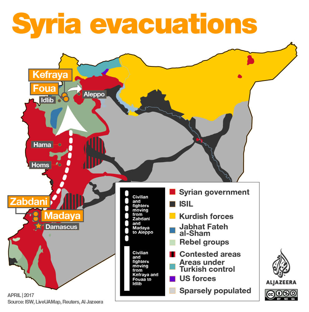 The large blast that targeted Syrian evacuation convoys on Saturday and killed at least dozens of residents who were evacuated from the rebel-besieged towns of Foua and Kefraya in Idlib province under a deal reached between the Syrian government and rebels, has brought the focus back to the evacuation deals signed between the Syrian regime and opposition armed groups.