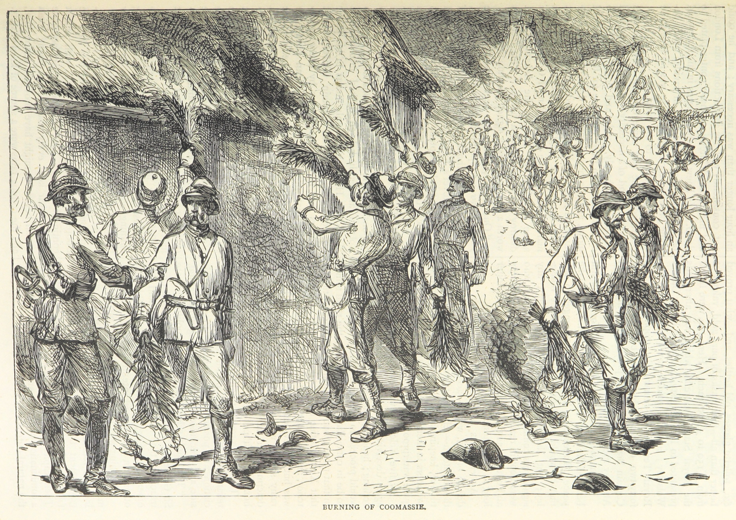 In 1872, Britain expanded its West African territories by purchasing the Dutch Gold Coast. It had become less profitable to the Dutch after the abolition of the slave trade. But the Asante, described by British MP Charles Adderley as “the most warlike of the African tribes,” refused to acknowledge British rule and in February 1874, a “punitive expedition” was mounted using 2,500 British troops. The Kumasi royal palace was destroyed with explosives and the city was ransacked and burned.