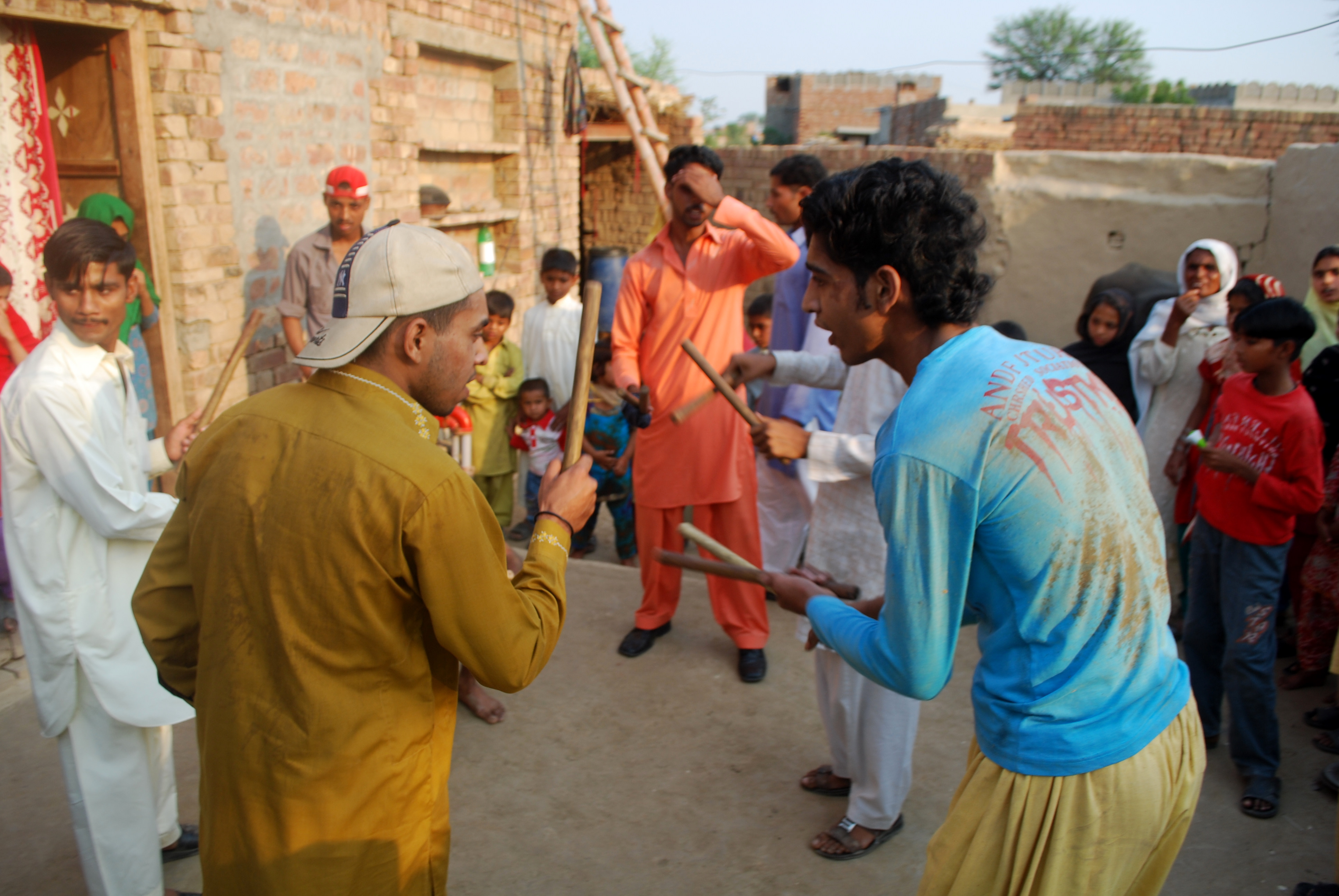 Inside the courtyard of a house in the village of Ram Thaman, near Lahore in Pakistan, an audience has gathered.