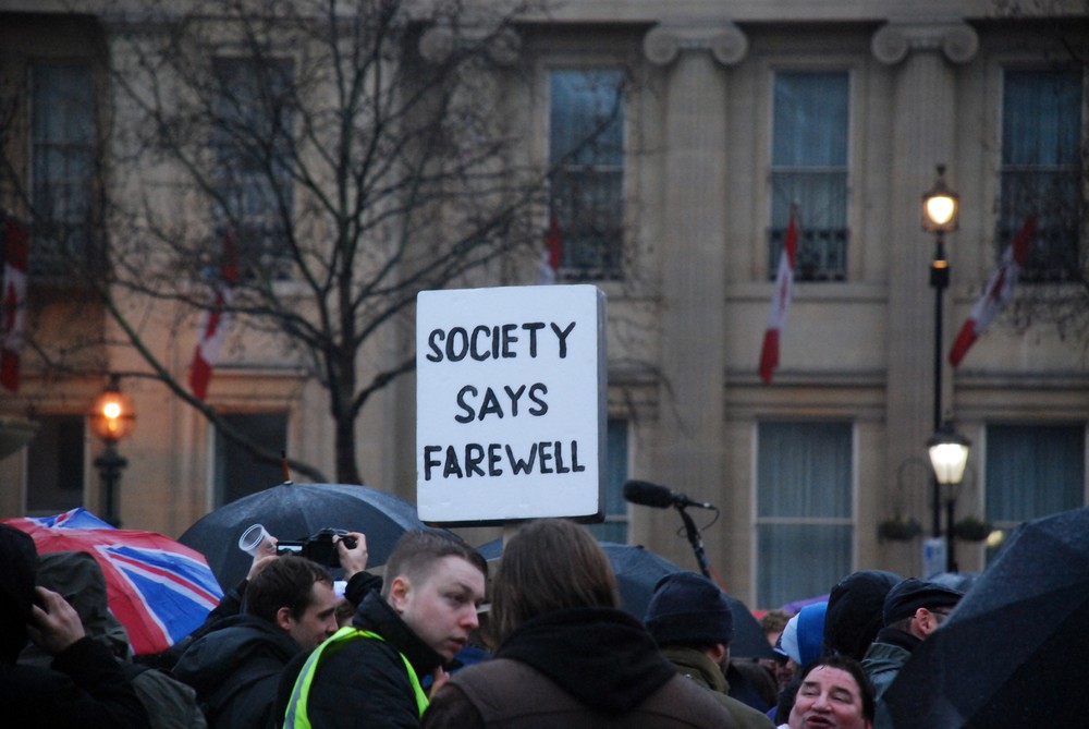 London, United Kingdom – Anarchist group Class War has, for decades now, been circulating the idea that, on the first Saturday after the death of former British Prime Minister Margaret Thatcher, those opposed to her divisive leadership should head for London’s Trafalgar Square to celebrate her demise.