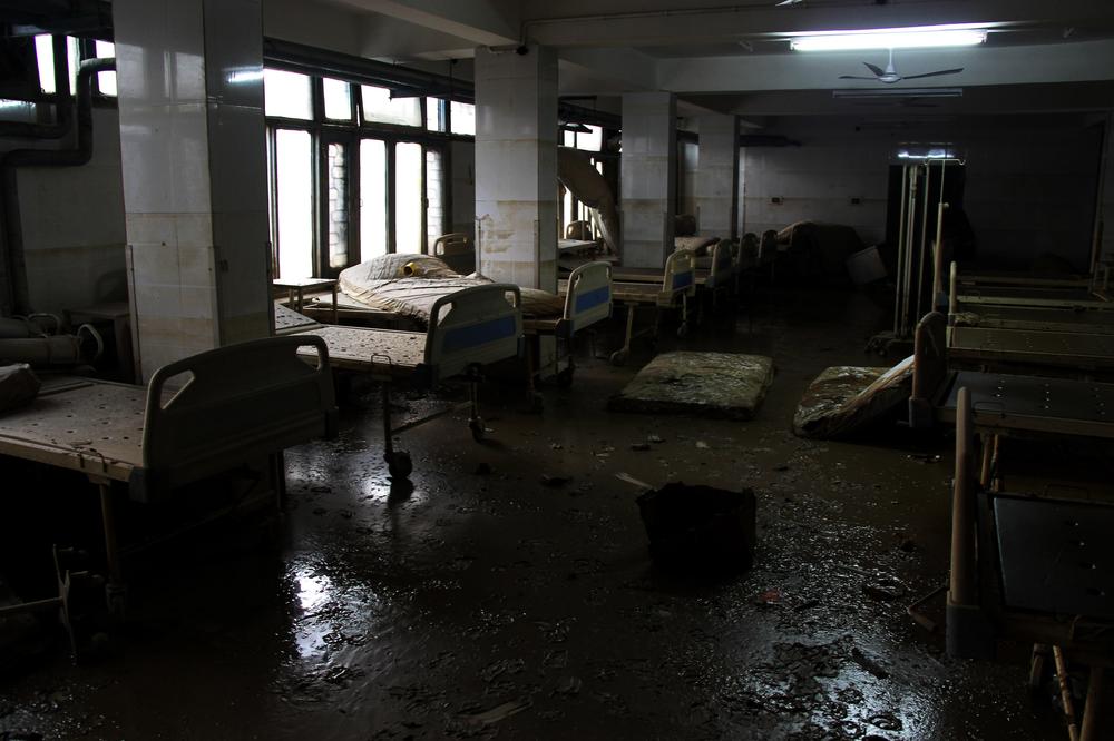 Water has now receded from the hospital buildings but stinky mud-coated walls, scattered beds and furniture, swampy corridors and heaps of trash inside, make them look no less than ghost houses. Hospital authorities are now accepting help from the Fire and Emergency Service department for dewatering and sanitation.