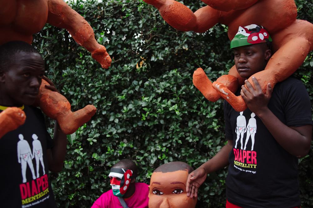 Nairobi, Kenya – The artists had spent weeks on the babies. There were fifty of them, and they were finished in the early hours of the morning of the protest. Carved from blocks of polystyrene and papier mâché for skin, they were carried down towards “Freedom Corner”, at Nairobi’s Uhuru Park.