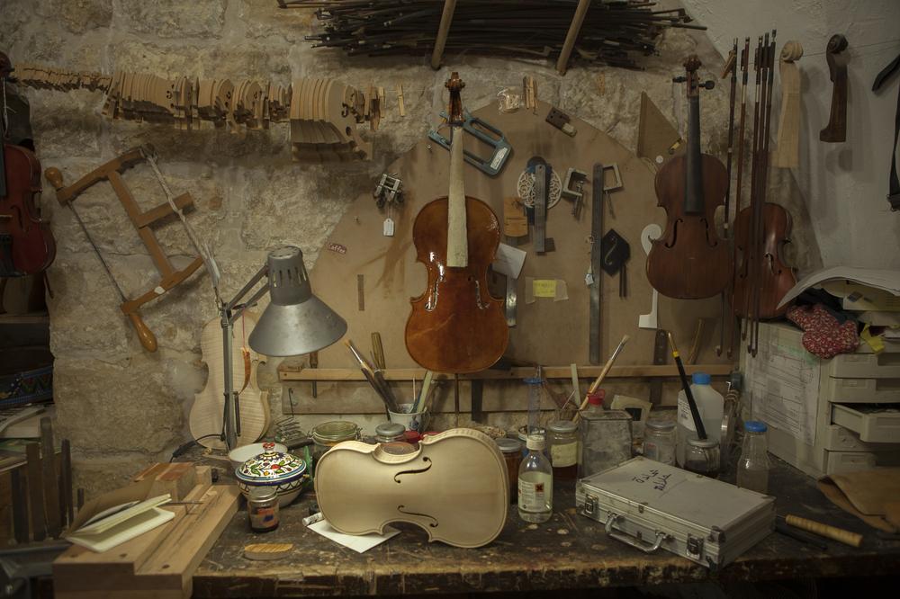 The youngest luthier in Ramallah lives next door to the shop where he makes and repairs violins.