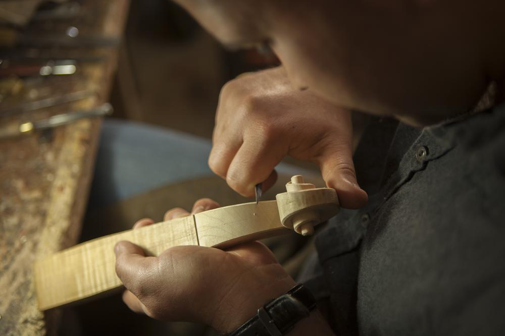Today, he works in the same workshop that once sparked his interest in repairing violins, and in addition to the repair work, he also makes three or four new violins each year. He tries to visit Europe each year to buy maple wood for his violins and to spend time with different luthiers to improve his craft.