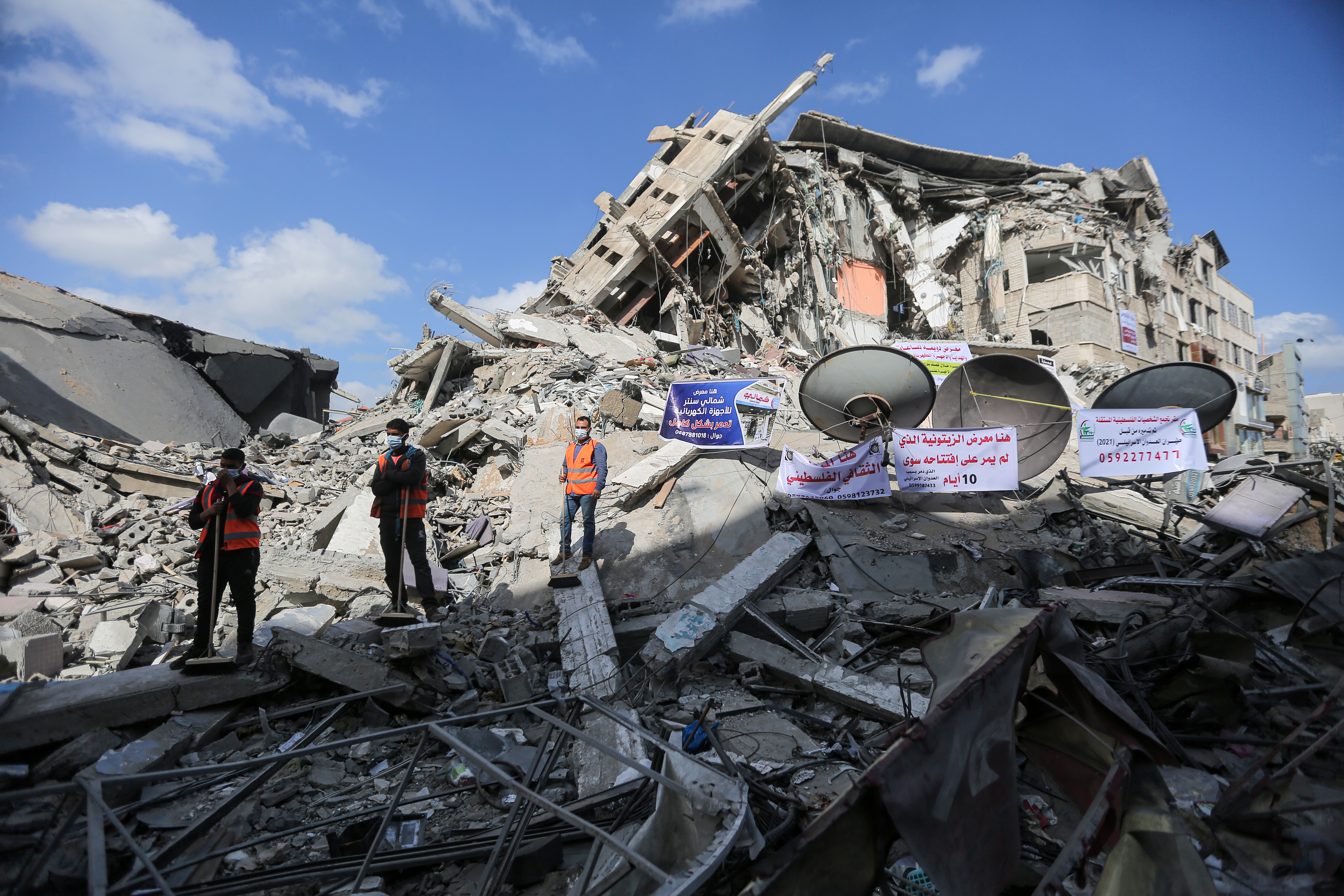 Under the slogan “We Will Rebuild It”, volunteers began clearing rubble from the site of what once used to be the Shorouq building – one of Gaza City’s oldest high-rises that was levelled by the Israeli military.