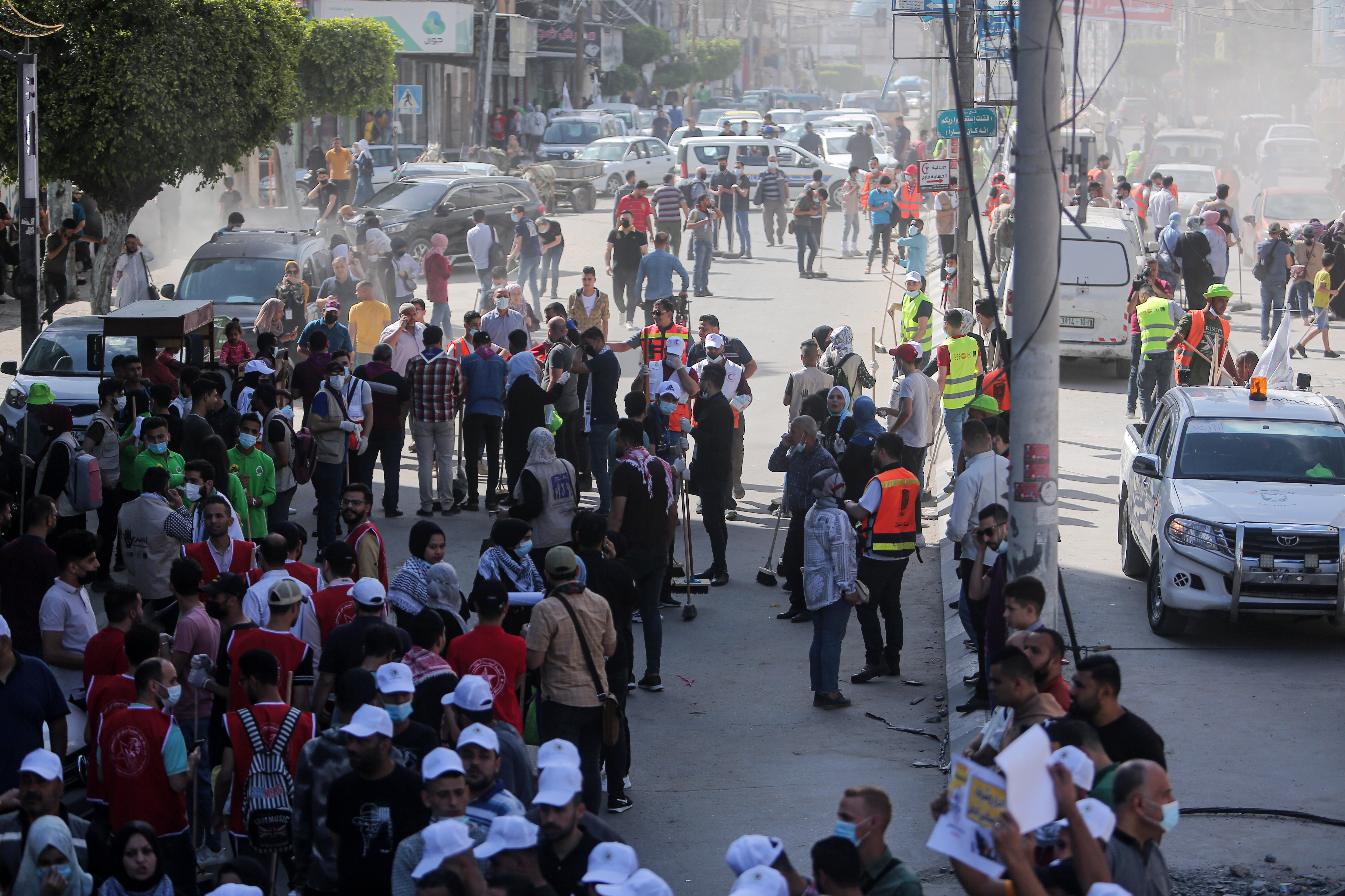 Gaza City – Thousands of Palestinians took to the streets in a campaign to clean up the destruction wreaked by Israel’s bombardment in its 11-day offensive.