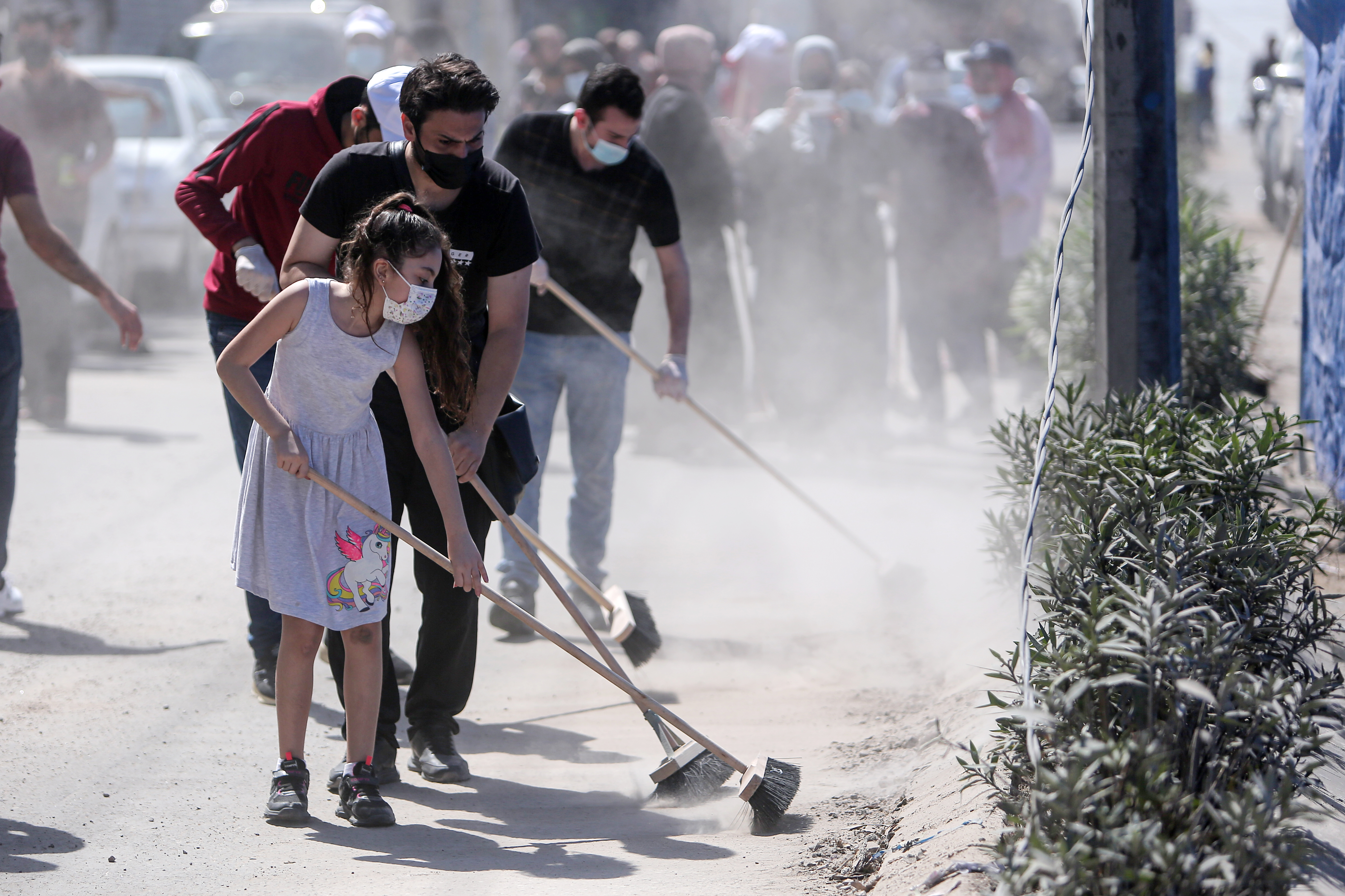 Volunteers clear rubble in a campaign to ‘bring back life to streets that have witnessed so much destruction’.
