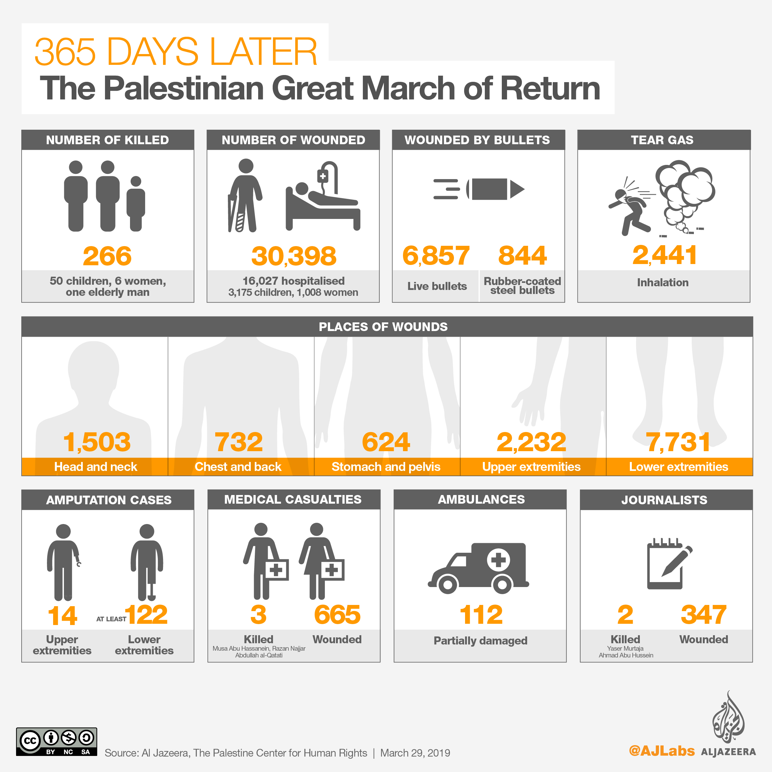 Israeli snipers opened fire at protesters during the demonstrations, killing 266 people and injuring almost 30,000 others in one year, according to Gaza’s health ministry.